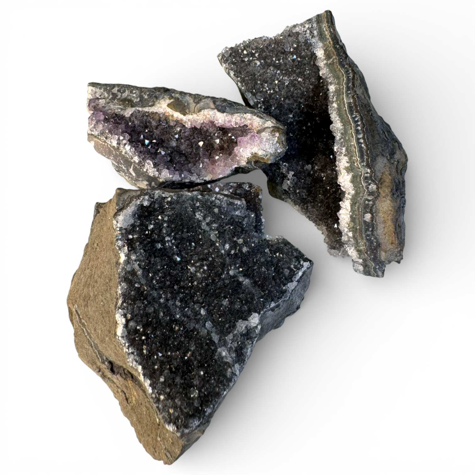 Set of 3 pieces, black amethyst clusters, Uruguay
