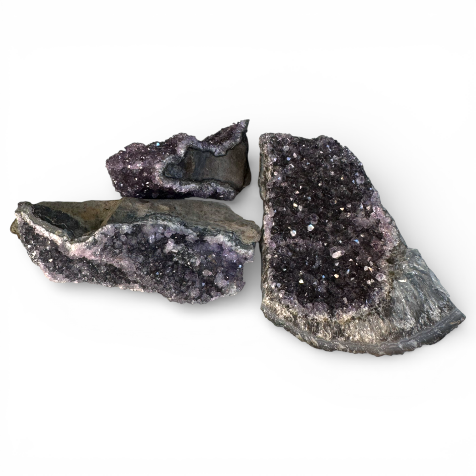 Set of 3 pieces, black amethyst clusters, Uruguay