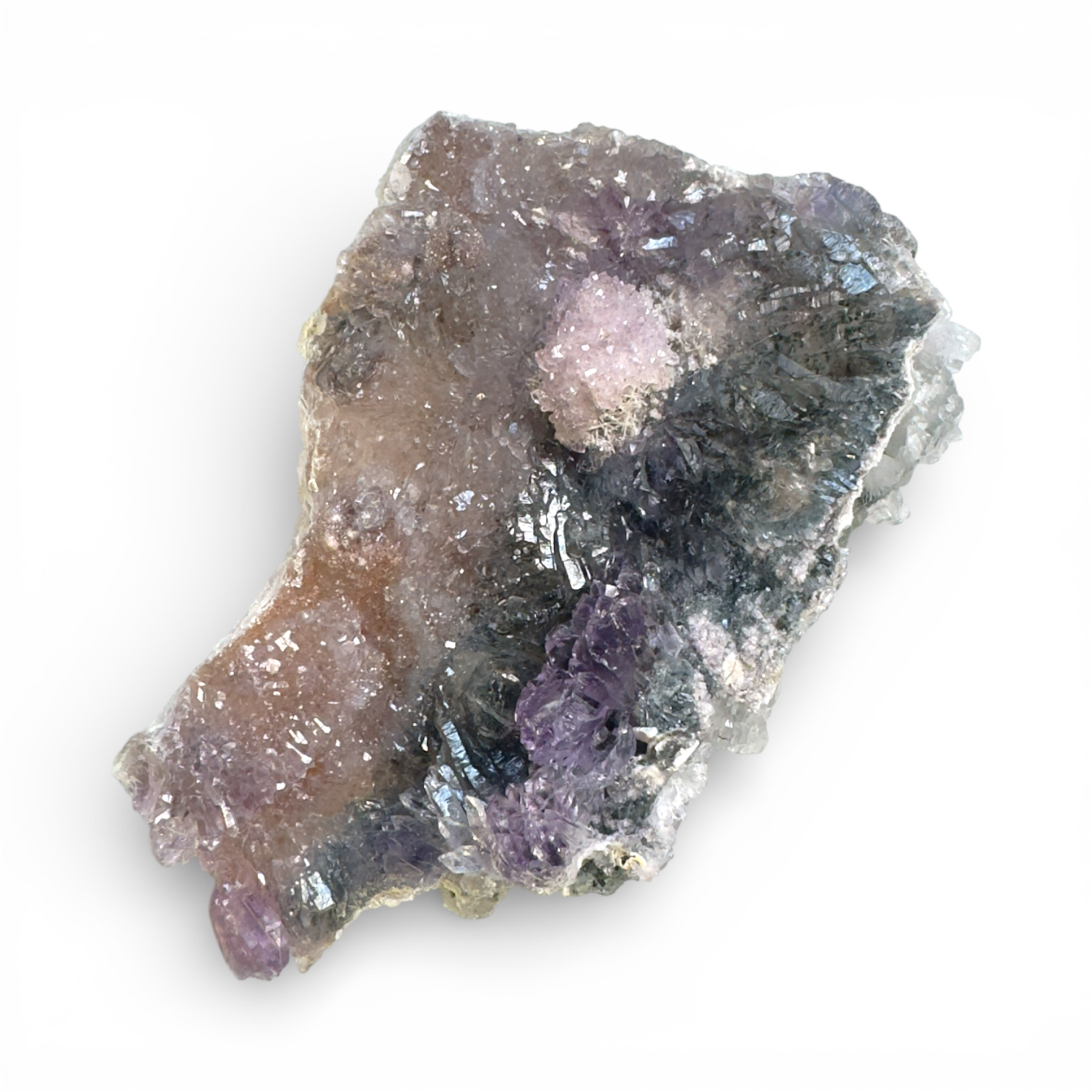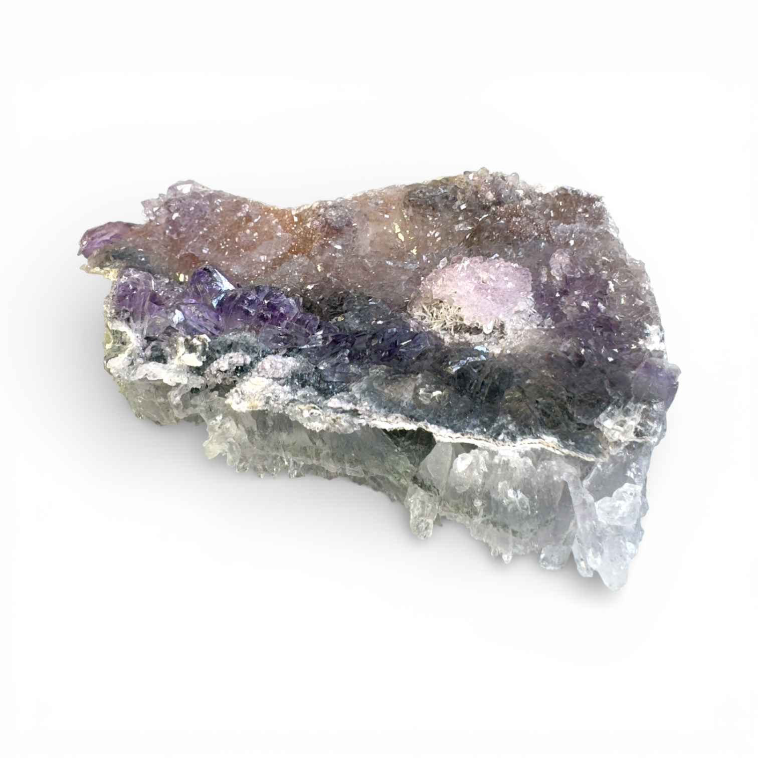 Flower Amethyst, characterized by its unique radiating, petal-like crystal aggregates, originates primarily from volcanic, silica-rich environments in South Ametrica and Madagascar. Major sources include the Rio Grande do Sul region in Brazil and Uruguay, where these formations develop in ancient basaltic vugs or geodes. The distinctive shape is created by a radial arrangement of amethyst prisms, which often form in rosette patterns.