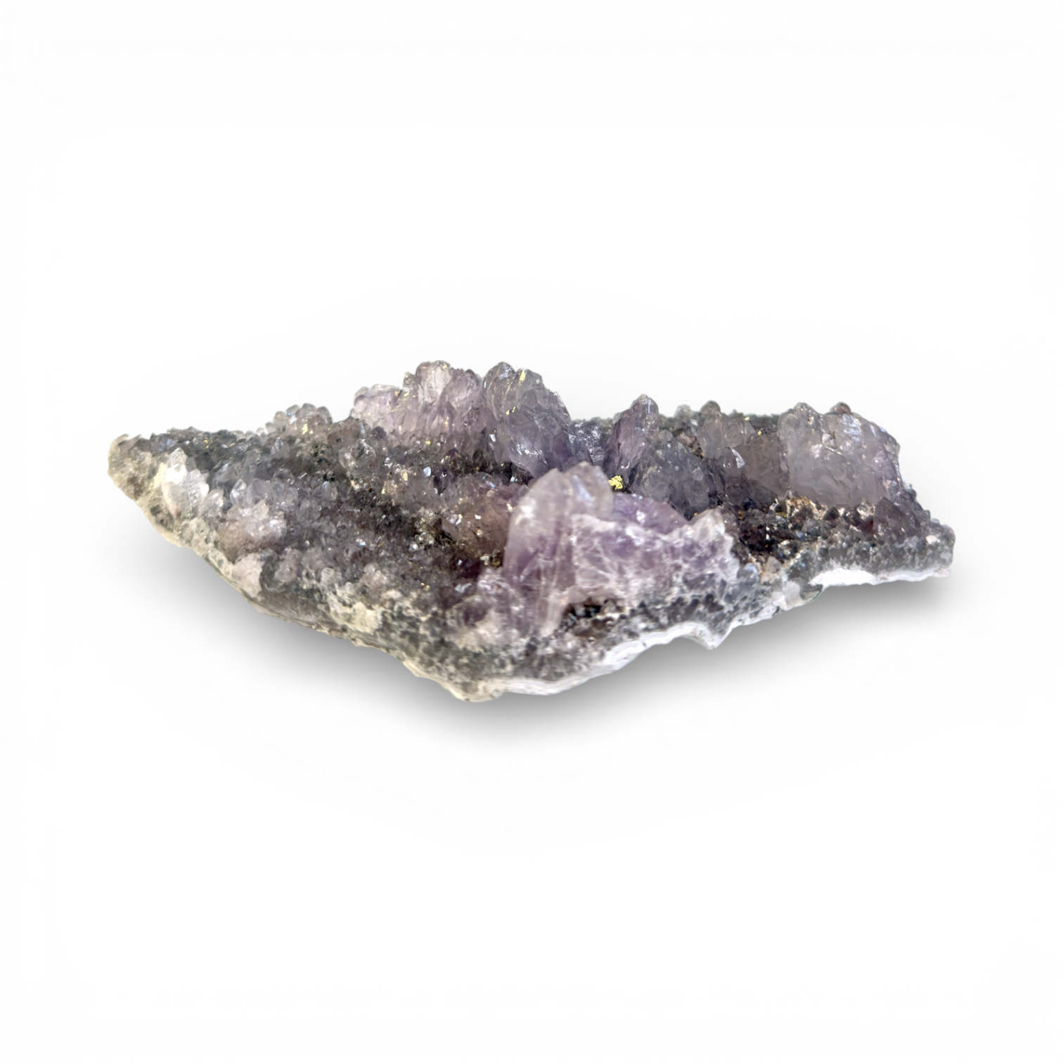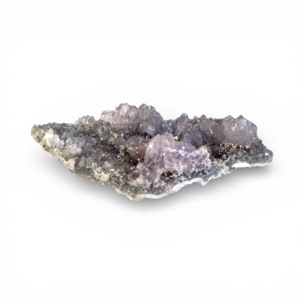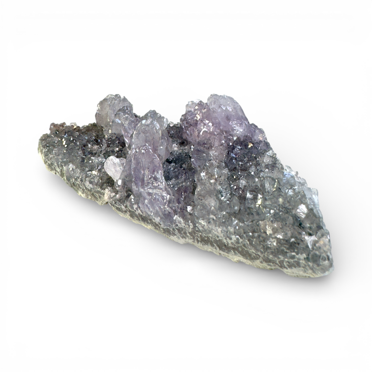 Flower Amethyst, characterized by its unique radiating, petal-like crystal aggregates, originates primarily from volcanic, silica-rich environments in South Ametrica and Madagascar. Major sources include the Rio Grande do Sul region in Brazil and Uruguay, where these formations develop in ancient basaltic vugs or geodes. The distinctive shape is created by a radial arrangement of amethyst prisms, which often form in rosette patterns.