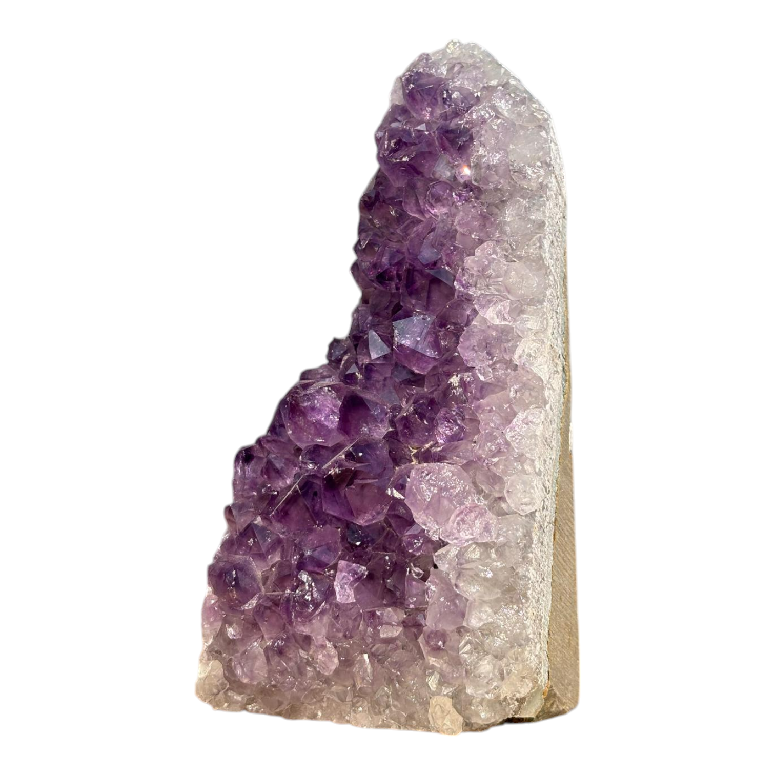 The name Amethyst is composed from the ancient Greek words ‘a’ and ‘methyskoo’, which put together mean ‘not intoxicated’. In history, Amethyst has always been popular by its supposed preventing of hangovers and drunkenness. Amethyst is a variety of quartz that is coloured by iron ions. These are 3+ charged when it forms, which causes dark-yellow colour, but then changes to 4+ when the crystal receives natural radiation from surrounding rock, which causes the purple colour. Because of the purple colour, people often name Amethyst as their favourite stone. The colour of Amethyst varies from light to dark purple, with the last one being the most valuable. Amethist manly comes from quartz-containing water that settles in geodes; cavities in the earth formed by volcanism or other processes.