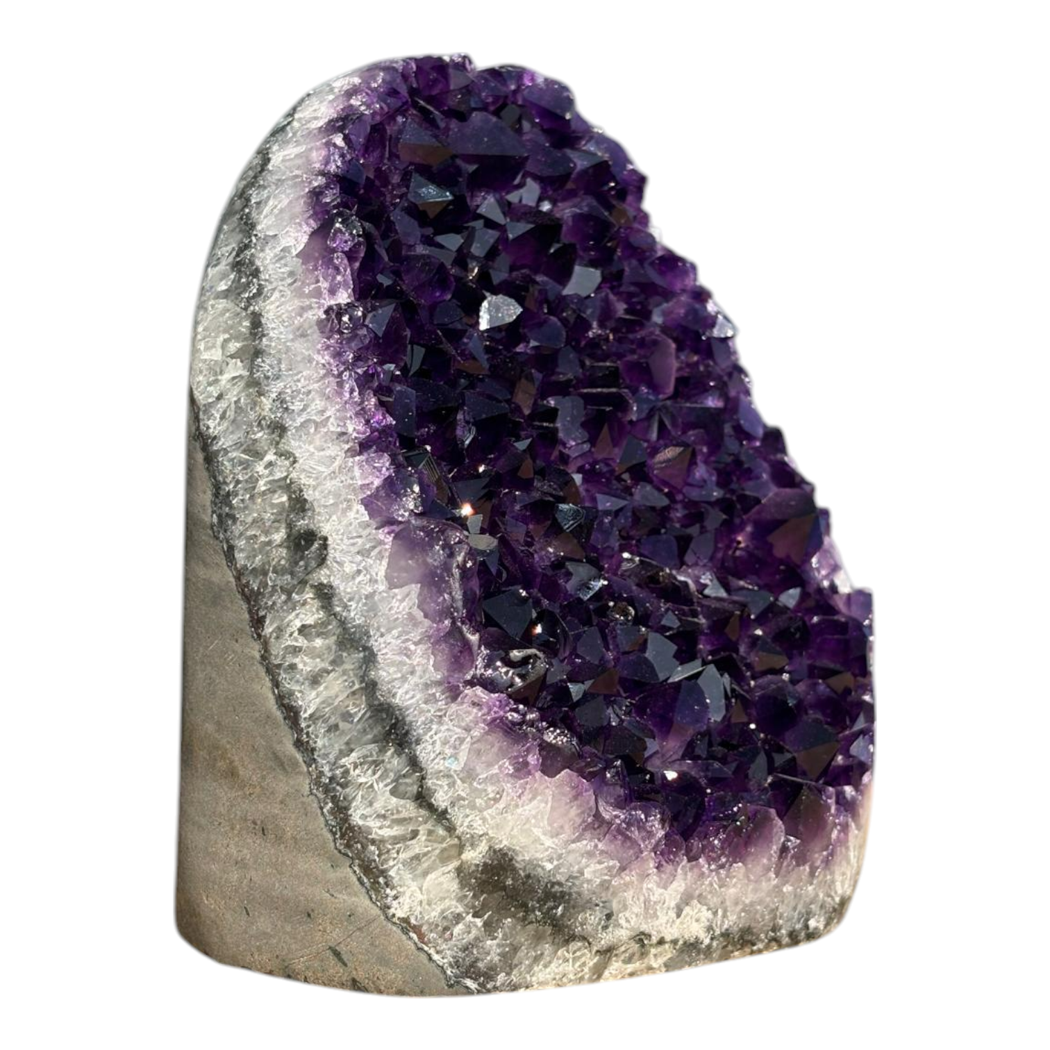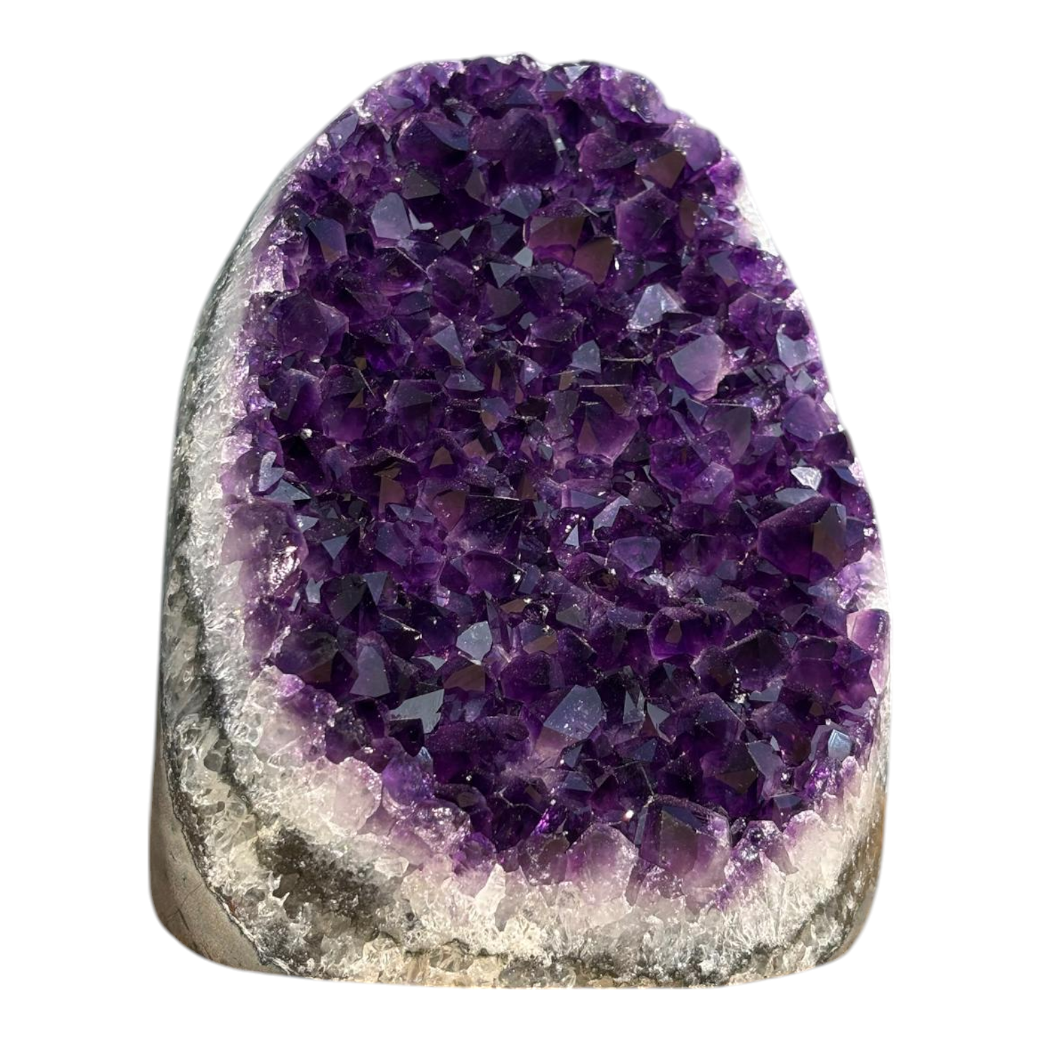 The name Amethyst is composed from the ancient Greek words ‘a’ and ‘methyskoo’, which put together mean ‘not intoxicated’. In history, Amethyst has always been popular by its supposed preventing of hangovers and drunkenness. Amethyst is a variety of quartz that is coloured by iron ions. These are 3+ charged when it forms, which causes dark-yellow colour, but then changes to 4+ when the crystal receives natural radiation from surrounding rock, which causes the purple colour. Because of the purple colour, people often name Amethyst as their favourite stone. The colour of Amethyst varies from light to dark purple, with the last one being the most valuable. Amethist manly comes from quartz-containing water that settles in geodes; cavities in the earth formed by volcanism or other processes.