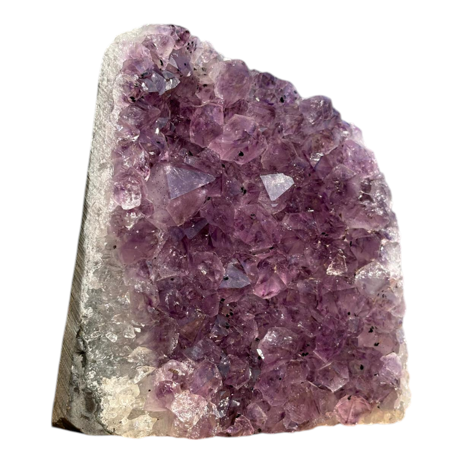 The name Amethyst is composed from the ancient Greek words ‘a’ and ‘methyskoo’, which put together mean ‘not intoxicated’. In history, Amethyst has always been popular by its supposed preventing of hangovers and drunkenness. Amethyst is a variety of quartz that is coloured by iron ions. These are 3+ charged when it forms, which causes dark-yellow colour, but then changes to 4+ when the crystal receives natural radiation from surrounding rock, which causes the purple colour. Because of the purple colour, people often name Amethyst as their favourite stone. The colour of Amethyst varies from light to dark purple, with the last one being the most valuable. Amethist manly comes from quartz-containing water that settles in geodes; cavities in the earth formed by volcanism or other processes.