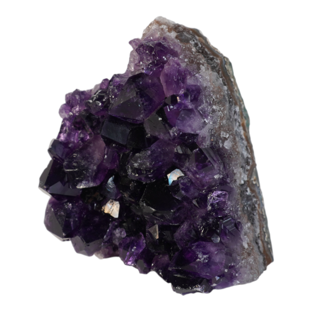 The name Amethyst is composed from the ancient Greek words ‘a’ and ‘methyskoo’, which put together mean ‘not intoxicated’. In history, Amethyst has always been popular by its supposed preventing of hangovers and drunkenness. Amethyst is a variety of quartz that is coloured by iron ions. These are 3+ charged when it forms, which causes dark-yellow colour, but then changes to 4+ when the crystal receives natural radiation from surrounding rock, which causes the purple colour. Because of the purple colour, people often name Amethyst as their favourite stone. The colour of Amethyst varies from light to dark purple, with the last one being the most valuable. Amethist manly comes from quartz-containing water that settles in geodes; cavities in the earth formed by volcanism or other processes.