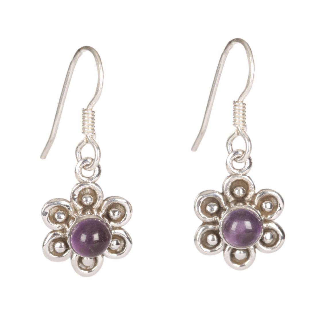 Log in for pricesEarrings flower Amethyst 5,5mm round cabochon silver 925
