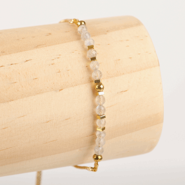 Labradorite is a very colourful feldspar variant and was first discovered in 1770 on the Labrador peninsula in Canada. That is of course the origin of the name. The stone gets is colour due to very thin plates inside the stone that refract the incoming light in very specific colours. This effect is also present in Moonstone, but also in the colour of the eye, the blue in the sky and on the blue on butterflies’ wings. Because of this, the colour varies a lot depending on the angle at which the stone is viewed and the incidence of the light present. The colour is blue green or yellow, most of the time. A purple colour is very rare, as well as continuous play of colour from all angles.