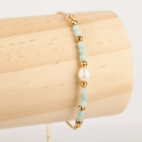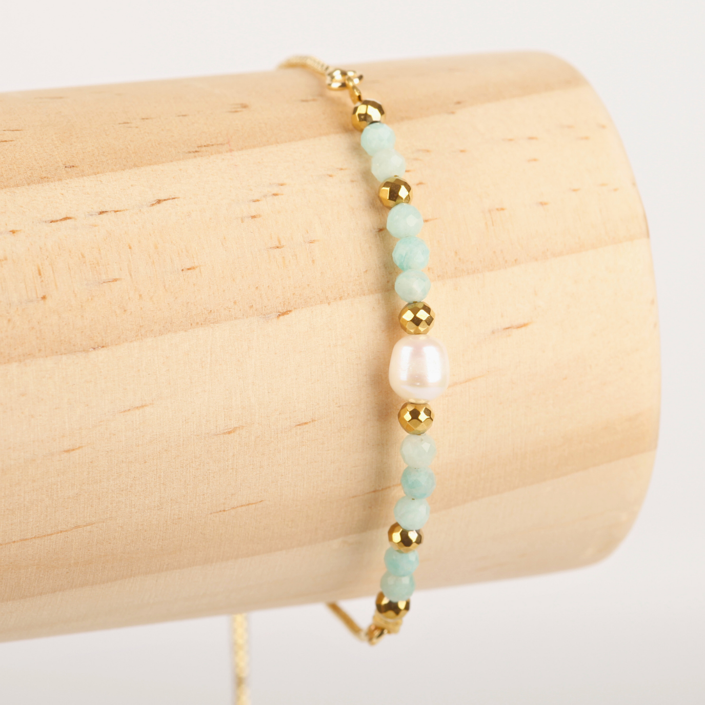 Amazonite is a blue-green feldspar variety. The stone gets its name from the Amazon river, where men used to find similar green stones. Later on these stones turned out to not be Amazonite at all, but the name stayed. Amazonite is often carved or cut, even though it can be a challenge due to Amazonite tearing easily. The stone has been found in jewellery from the Ancient Egyptians, but can’t be found in any text from Ancient times. Amazonite gets its colour from lead and water traces in the stone. People use to think the colour came from copper, because copper often causes minerals to show green or blue colours (like Malachite or Azurite). This claim has been disproven in the 1980s.