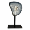 Agate halve on metal stand, Brazil.