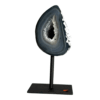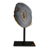 Agate halve on metal stand, Brazil.