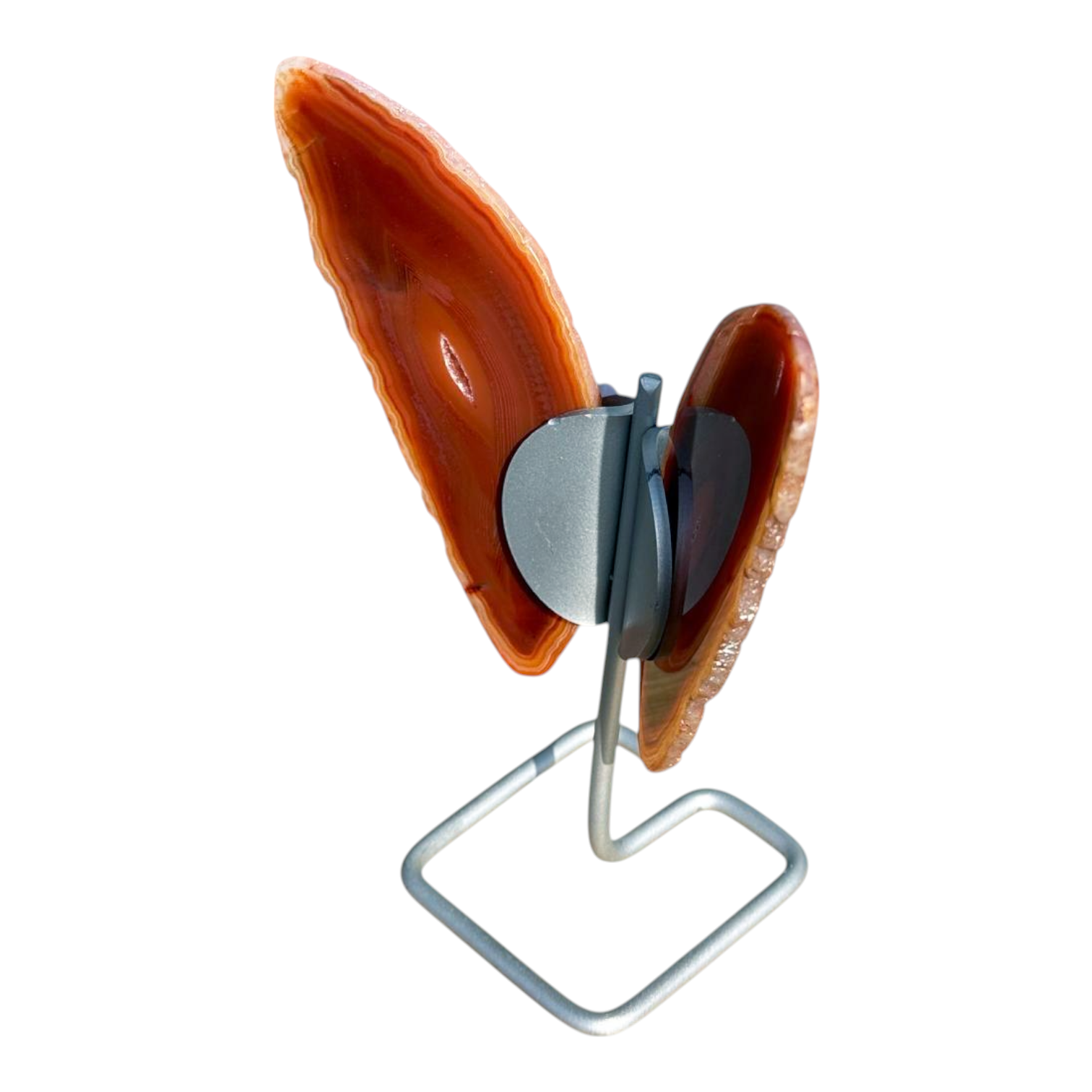 Agate is a popular mineral that is often found in volcanic cavities. The often layered stone is a crypto-crystalline form of quartz, which means that the crystals form on a microscopic scale and are not detectable by the naked eye. The wide range of colours in which agate is found is caused by metal ions dispersed throughout the mineral. Agate forms when in water dissolved silica (quartz) flows past a cavity in the rock while the liquid, also called silicic acid, is cooling down. Because of the cooling, the water can contain less quartz and it deposits these quartz-molecules. Depending on the circumstances, the quartz can form in macro- or microcrystalline (also called cryptocrystalline) shape. In the last case, Agate can come into existence. The name Agate is derived from an ancient name for the river Dirillo, namely Achates, in Sicily, where Agate was first discovered.