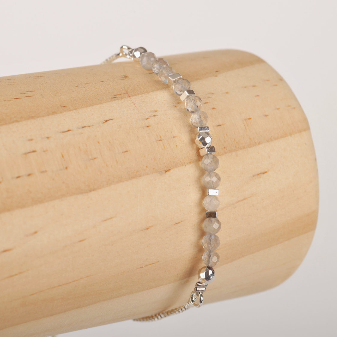 Labradorite is a very colourful feldspar variant and was first discovered in 1770 on the Labrador peninsula in Canada. That is of course the origin of the name. The stone gets is colour due to very thin plates inside the stone that refract the incoming light in very specific colours. This effect is also present in Moonstone, but also in the colour of the eye, the blue in the sky and on the blue on butterflies’ wings. Because of this, the colour varies a lot depending on the angle at which the stone is viewed and the incidence of the light present. The colour is blue green or yellow, most of the time. A purple colour is very rare, as well as continuous play of colour from all angles.