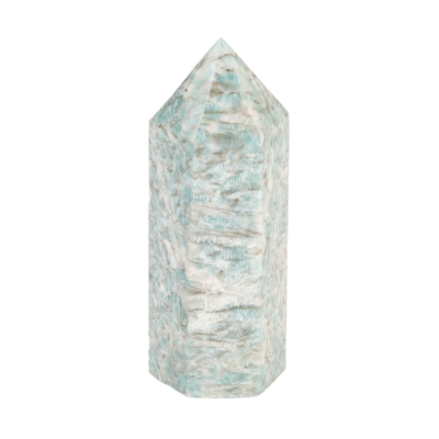 Amazonite is a blue-green feldspar variety. The stone gets its name from the Amazon river, where men used to find similar green stones. Later on these stones turned out to not be Amazonite at all, but the name stayed. Amazonite is often carved or cut, even though it can be a challenge due to Amazonite tearing easily. The stone has been found in jewellery from the Ancient Egyptians, but can’t be found in any text from Ancient times. Amazonite gets its colour from lead and water traces in the stone. People use to think the colour came from copper, because copper often causes minerals to show green or blue colours (like Malachite or Azurite). This claim has been disproven in the 1980s.