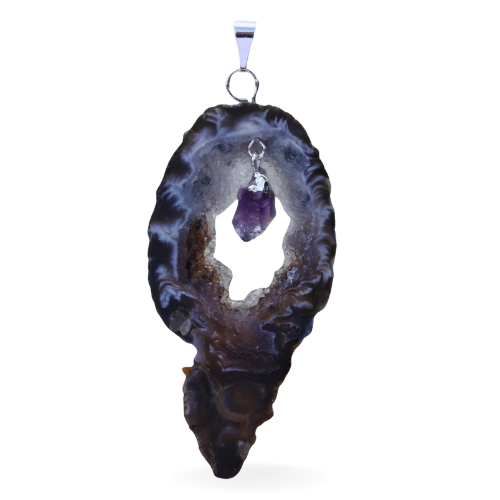 Silver plated pendant – Geode with loose Amethyst