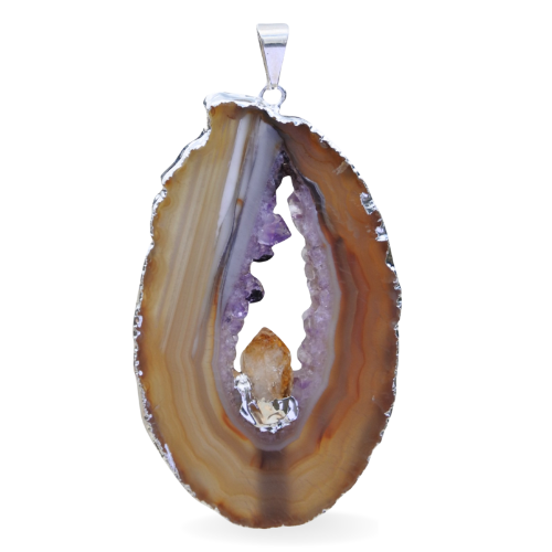 Silver plated pendant – Geode with pinned Citrine