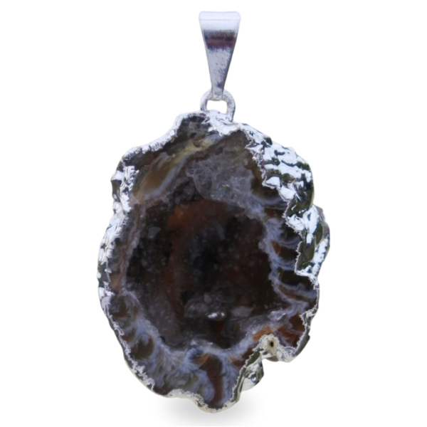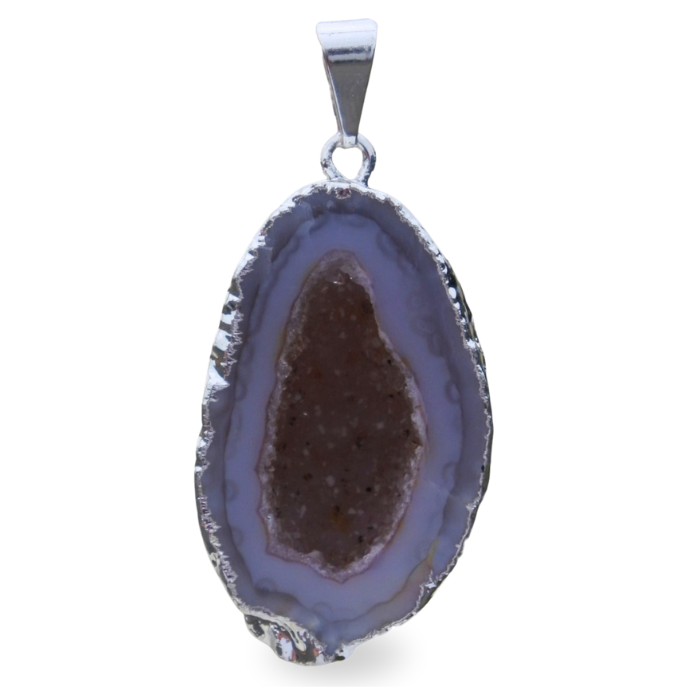 Log in for pricesHalf ocos geode pendant with silver plated rim, Brazil.