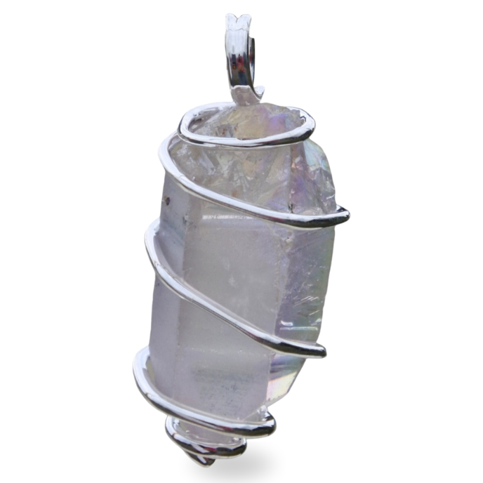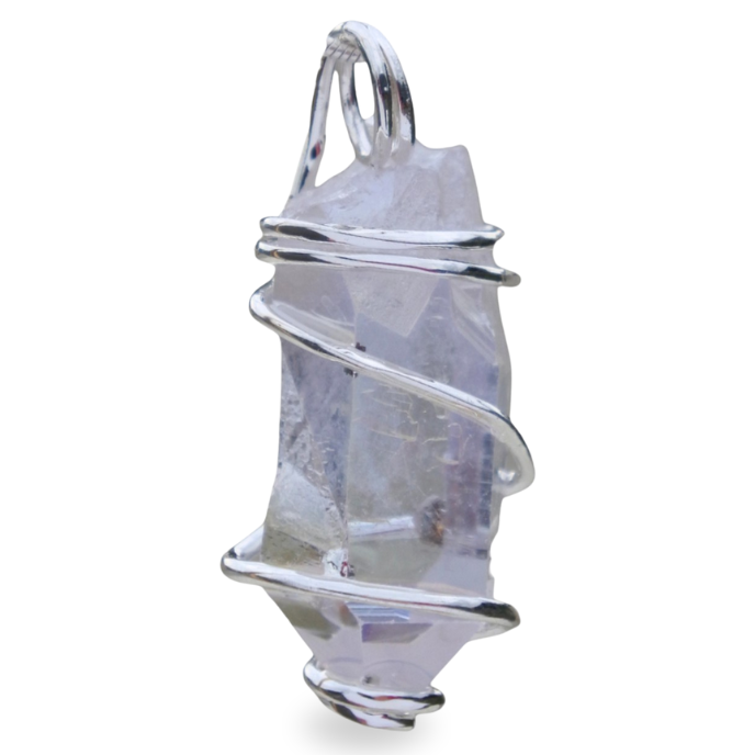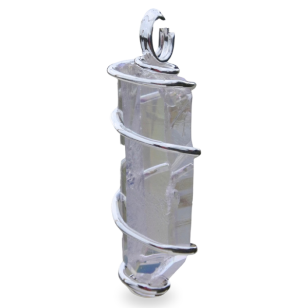 Log in for pricesRockcrystal point pendant Aura treated in silver plated coil, Brazil.