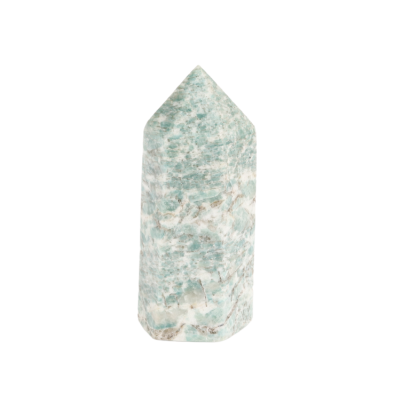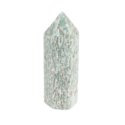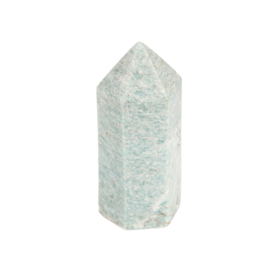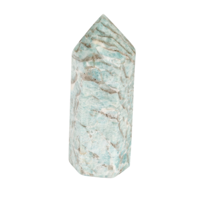 Amazonite is a blue-green feldspar variety. The stone gets its name from the Amazon river, where men used to find similar green stones. Later on these stones turned out to not be Amazonite at all, but the name stayed. Amazonite is often carved or cut, even though it can be a challenge due to Amazonite tearing easily. The stone has been found in jewellery from the Ancient Egyptians, but can’t be found in any text from Ancient times. Amazonite gets its colour from lead and water traces in the stone. People use to think the colour came from copper, because copper often causes minerals to show green or blue colours (like Malachite or Azurite). This claim has been disproven in the 1980s.