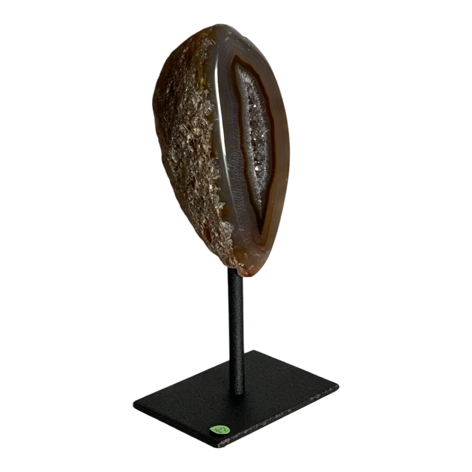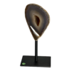 Agate halve on metal stand, Brazil.